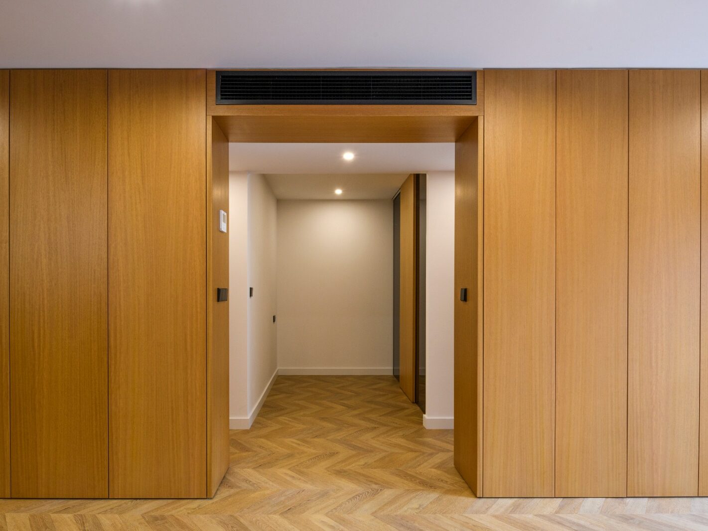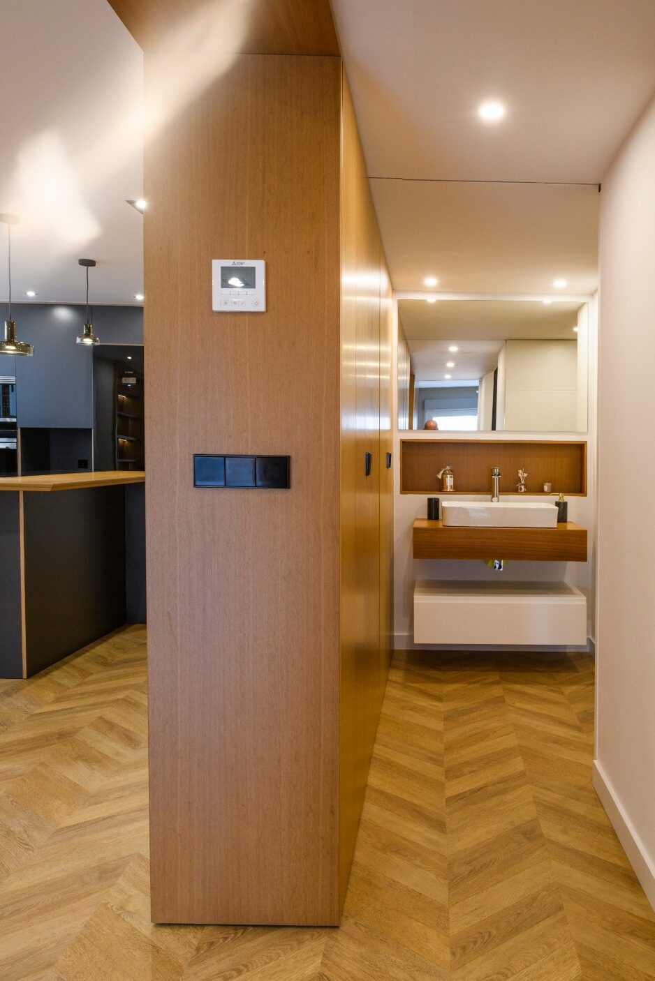 Cuando afrontamos una reforma integral desde cero, tenemos la oportunidad de diseñar espacios pensados al milímetro, donde cada decisión suma. Este proyecto es un claro ejemplo: una vivienda situada en pleno corazón de la ciudad de Murcia en la que destaca un gran muro de carpintería a medida, concebido como elemento protagonista que organiza y separa la zona de día y de noche.